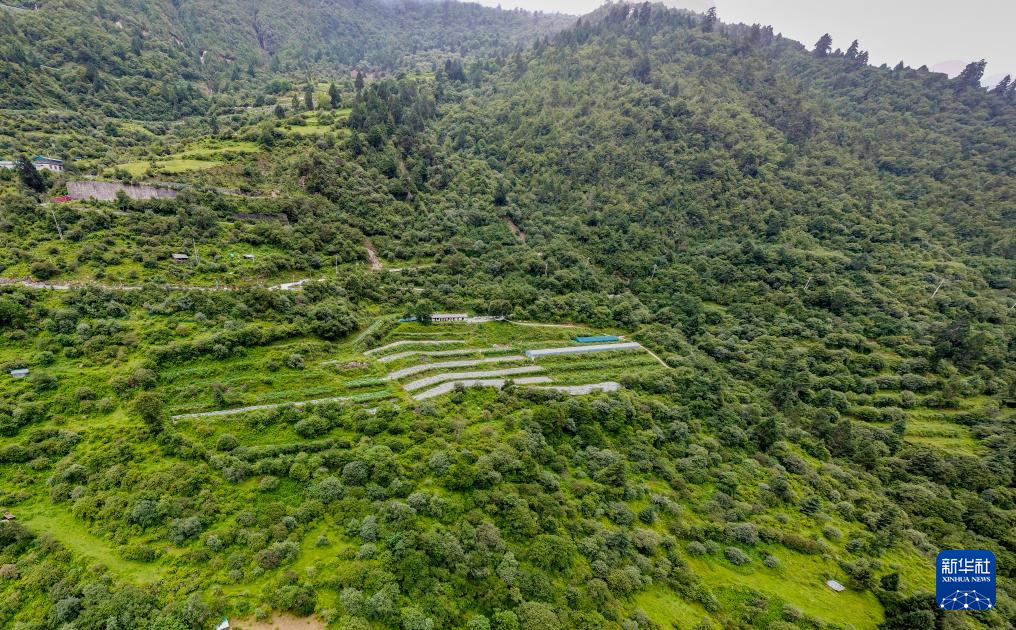 这是错那市贡日门巴民族乡斯木村的莓茶种植试验田(无人机照片,7月28日摄)。