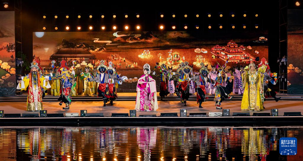 在2023拉萨雪顿节开幕式文艺演出上,京剧藏戏《文成公主》再次上演(8月16日摄)。丁增尼达 摄