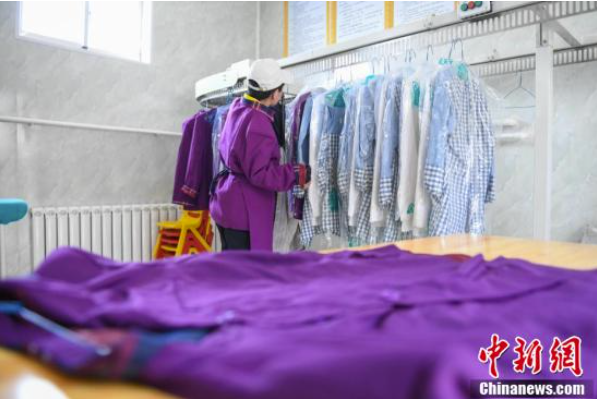 那曲市特殊教育学校学生学习干洗衣服。
