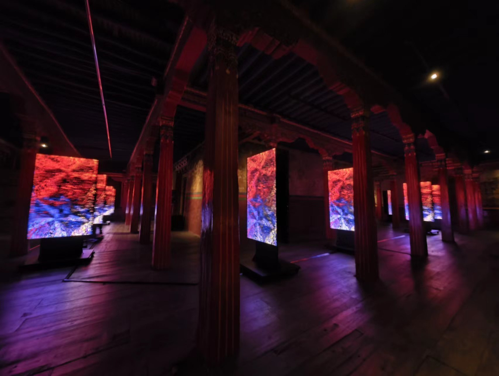 吉本岗艺术中心联合创始人盛立宇表示,在吉本岗艺术中心这座古建筑中呈现这样一场新媒体艺术展,首要前提是对古建的保护,此次展览要求布展实施方严格按照国家文物保护规定设置所有设备的参数,注意用电安全和消防。“我认为‘无限宇宙’是对古建筑的激活,我们也非常期待古代壁画和当代艺术在建筑中的交相辉映。”盛立宇说。