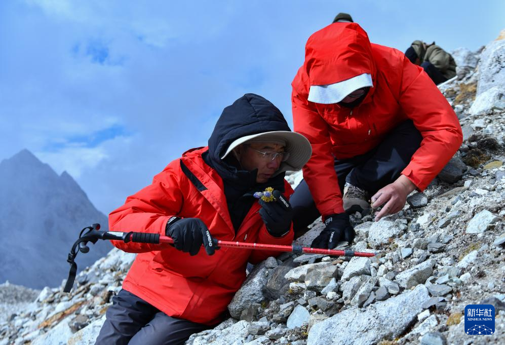 中国科学院青藏高原研究所汪诗平研究员(左)和他的团队在采集卓奥友峰附近的植物样本(9月29日摄)。新华社记者 晋美多吉 摄