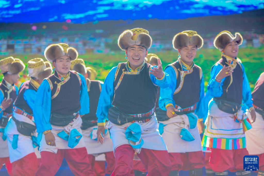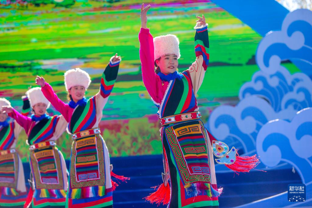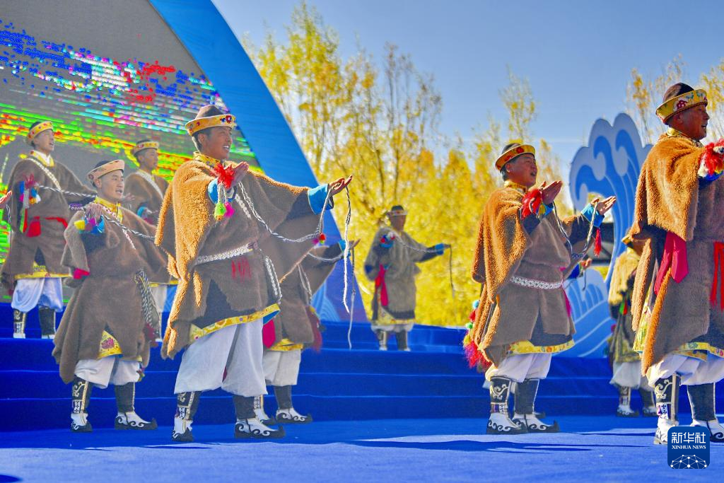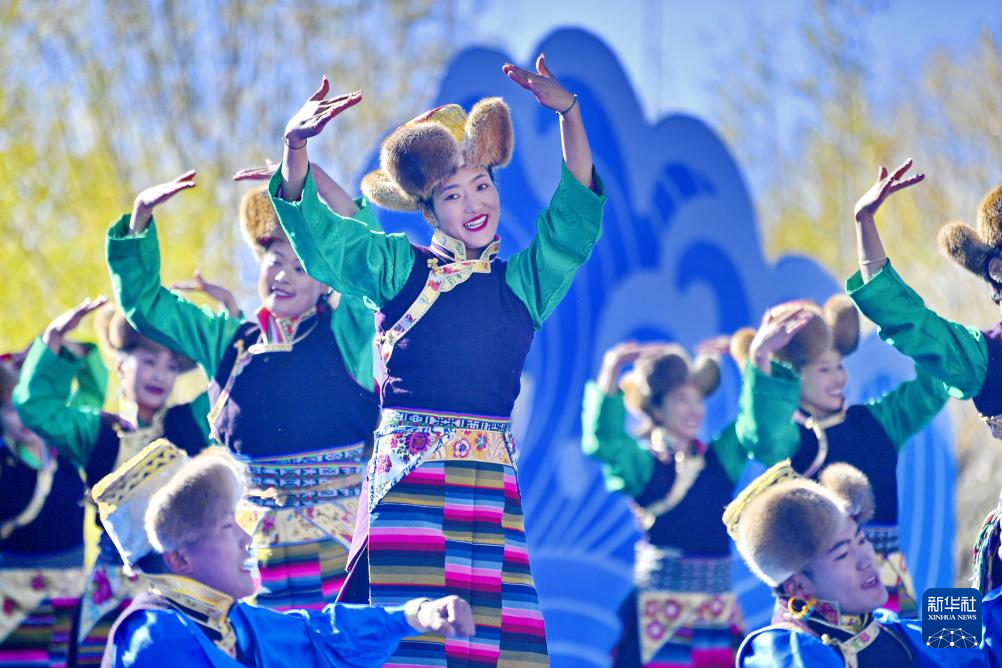 11月10日,西藏自治区阿里地区改则县改则镇鲁仁居委会文艺队在表演舞蹈《草原情》。 新华社记者 邵泽东 摄
