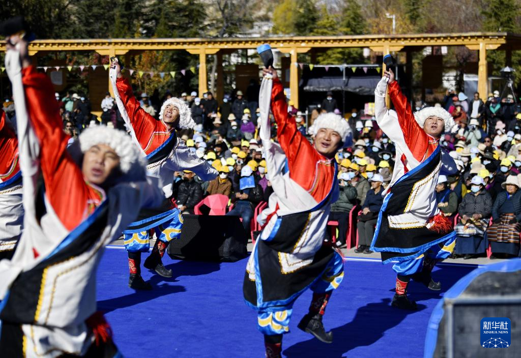 11月10日,西藏自治区山南市贡嘎县东拉乡吉琼村文艺队在表演节目《幸福新村》。 新华社记者 张汝锋 摄