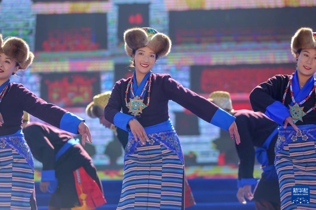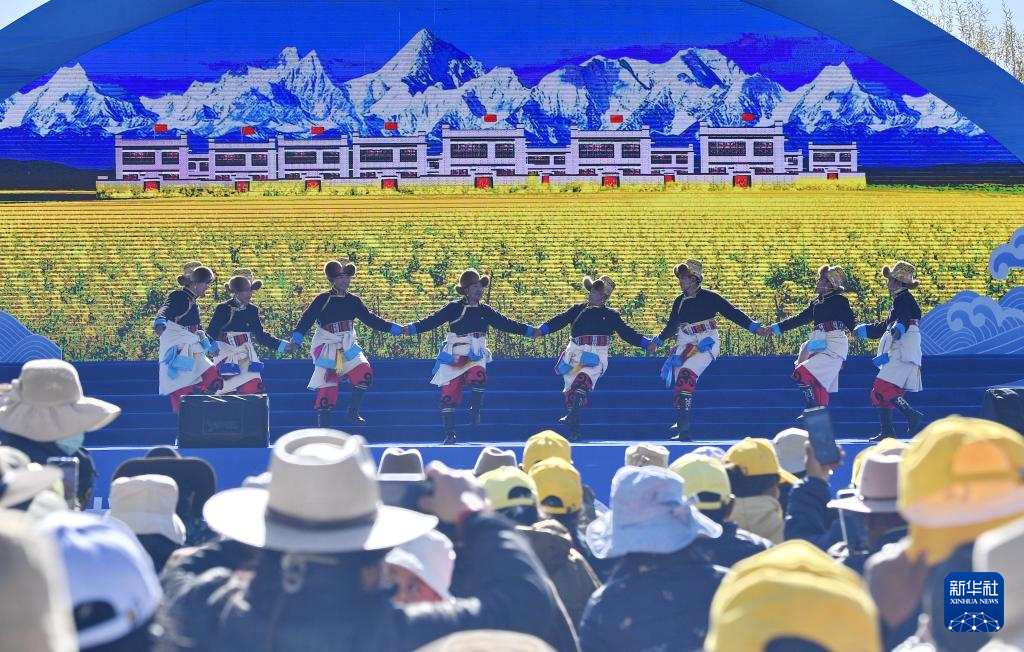 11月10日,西藏自治区山南市贡嘎县东拉乡吉琼村文艺队在表演节目《幸福新村》。 新华社记者 邵泽东 摄当日,2023年西藏自治区行政村优秀节目汇演在拉萨市曲米路公园拉开帷幕,来自西藏7个地市10余个行政村的文艺演出队表演了歌舞、戏曲等文艺节目。