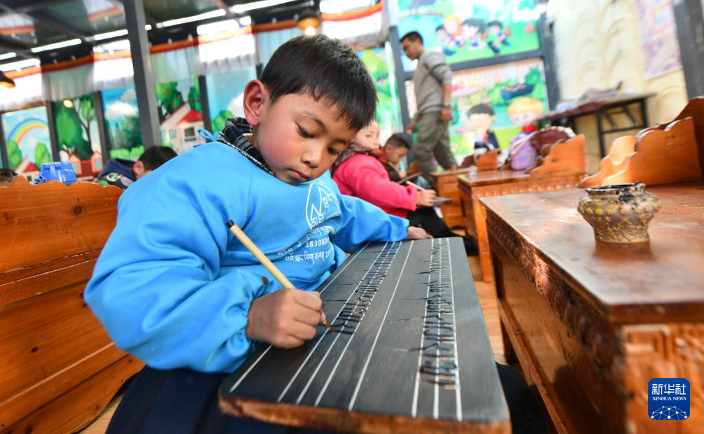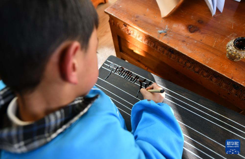 在拉萨的一家藏文书法兴趣班里,学生使用“墙星”练习藏文书法(12月2日摄)。新华社记者 春拉 摄