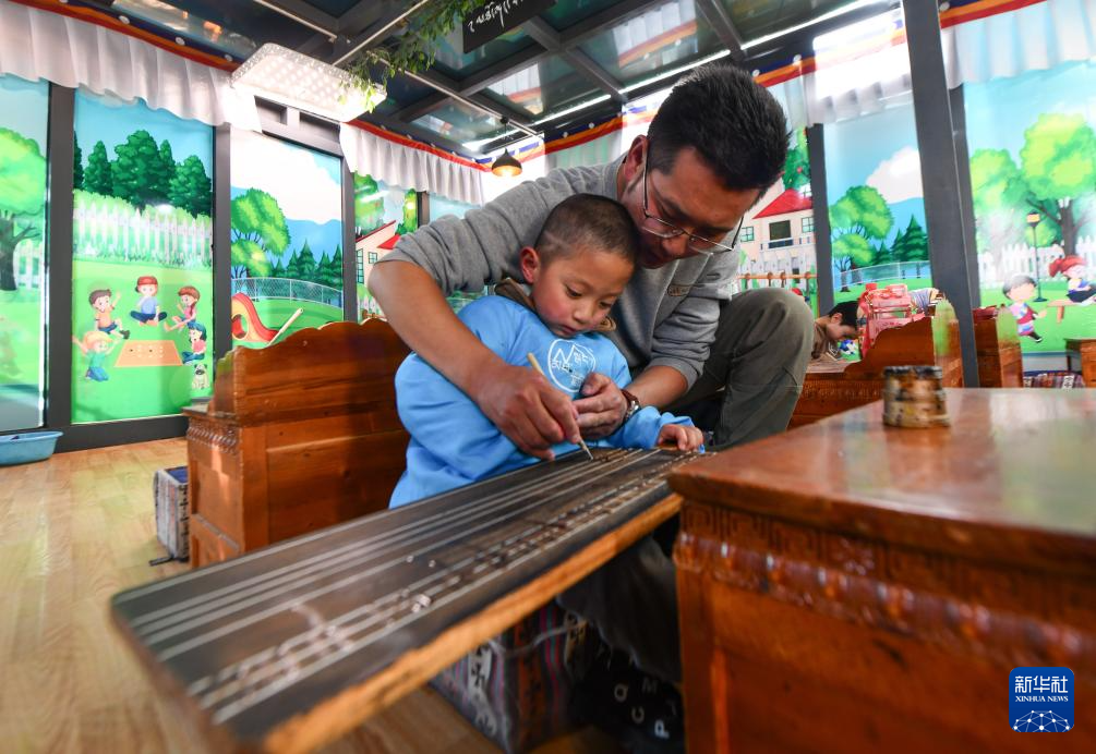 在拉萨的一家藏文书法兴趣班里,老师指导学生使用“墙星”练习藏文书法(12月2日摄)。新华社记者 春拉 摄