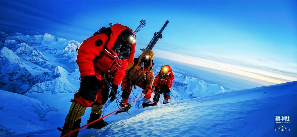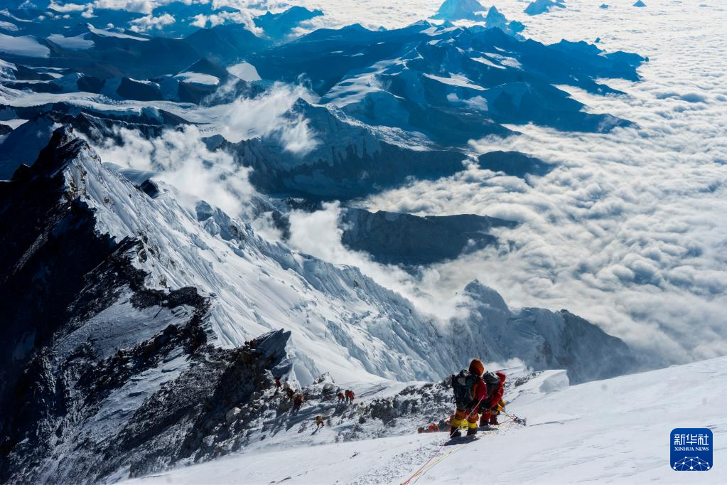 中国登山者在攀登珠峰(2020年5月19日摄)。新华社发(川藏高山向导协作队供图)