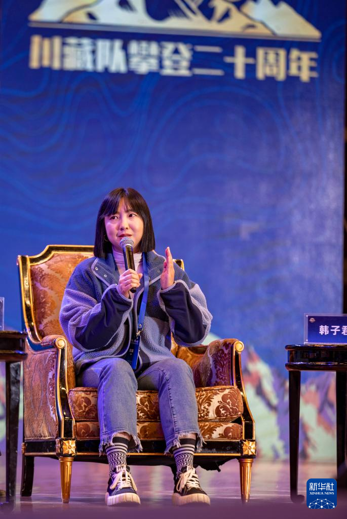 12月11日,第一位分别从南坡和北坡登上珠穆朗玛峰的中国女性登山者韩子君在交流大会上分享自己的珠峰故事。新华社记者 黄耀漫 摄