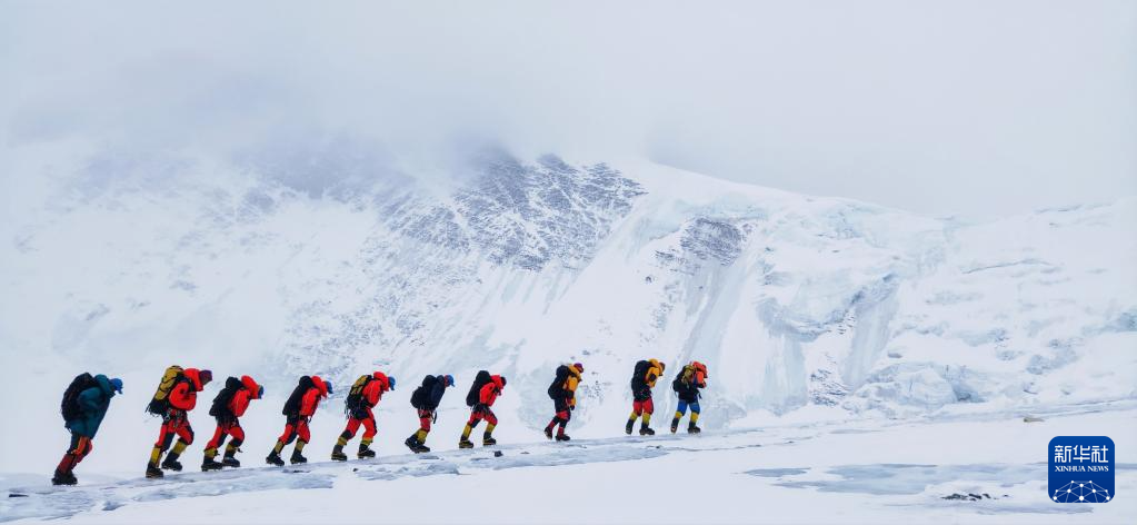 中国登山者在攀登珠峰(5月23日摄)。新华社发(川藏高山向导协作队供图)
