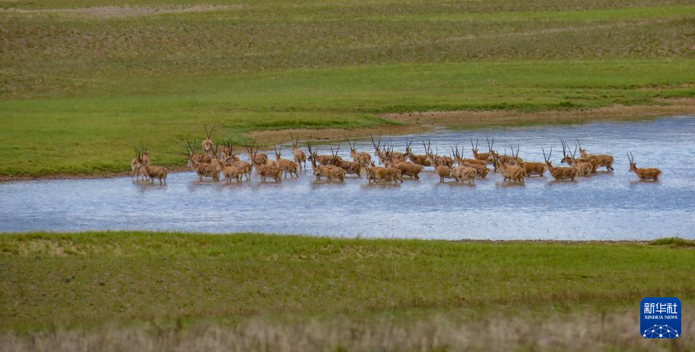 这是格桑伦珠在巡护途中拍摄的藏羚羊群(8月12日摄)。新华社发(格桑伦珠 摄)