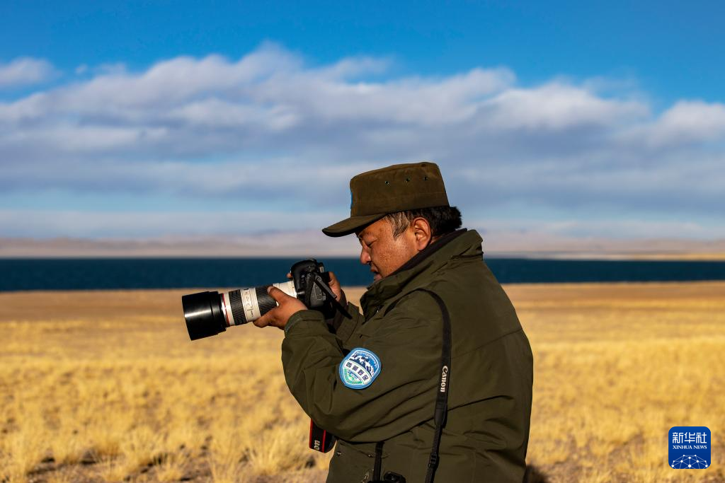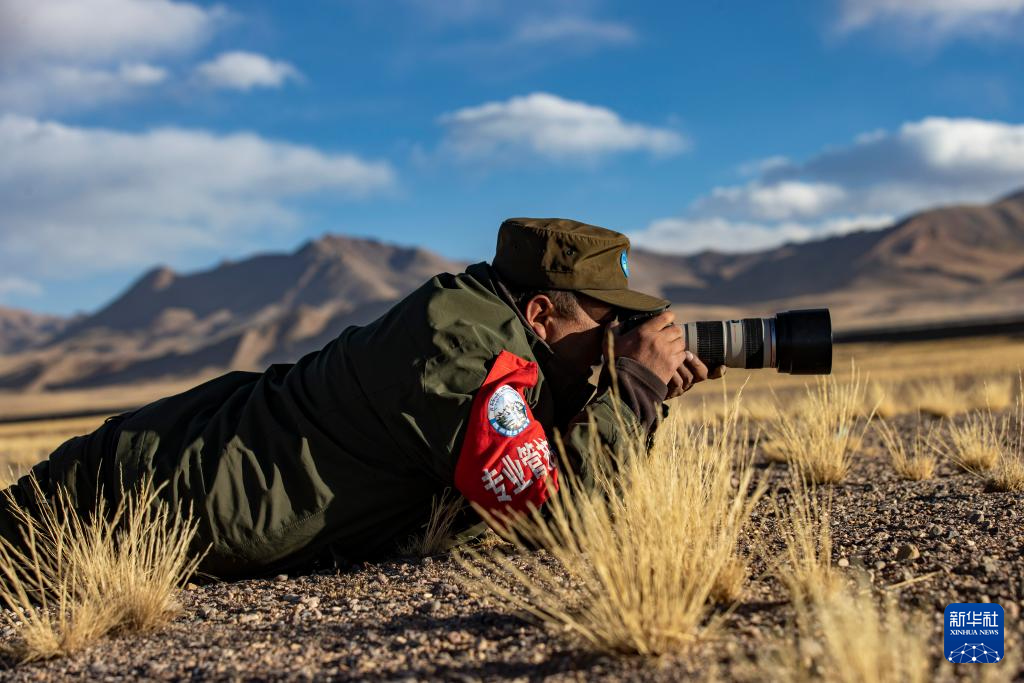 格桑伦珠在巡护途中拍摄野生动物(12月21日摄)。新华社记者 姜帆 摄