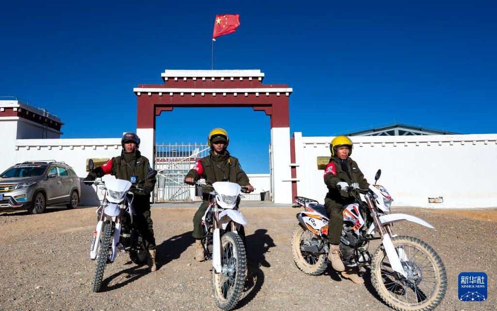 巡护队员们骑上山地摩托准备出发巡护(12月17日摄)。新华社记者 姜帆 摄