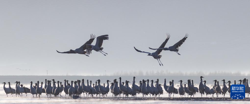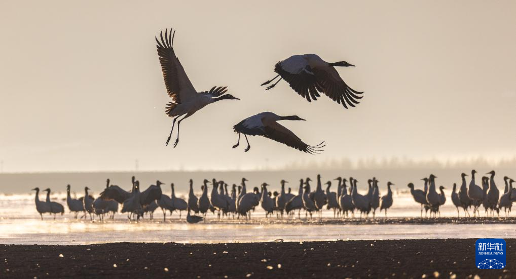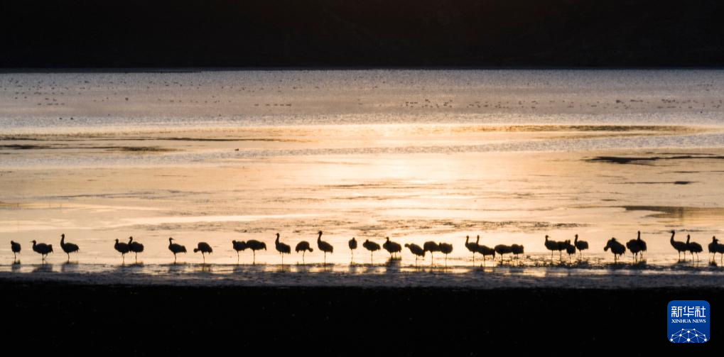 拉萨北部的林周县平均海拔约4200米,是黑颈鹤的主要越冬地之一。清晨的阳光洒在林周县虎头山水库,水面波光粼粼,鹤影婀娜多姿。