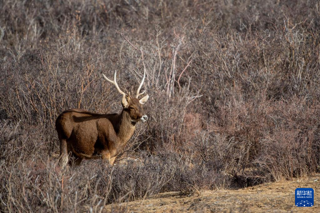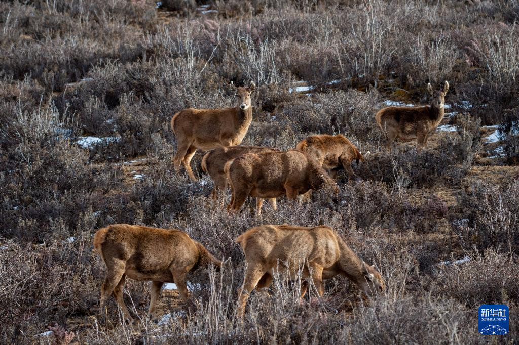 西藏山南市桑日西藏马鹿县级自然保护区内的西藏马鹿(1月14日摄)。新华社记者 田金文 摄