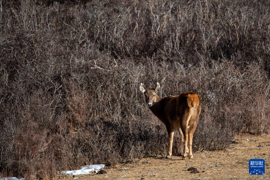 西藏山南市桑日西藏马鹿县级自然保护区内的西藏马鹿(1月14日摄)。新华社记者 旦增尼玛曲珠 摄