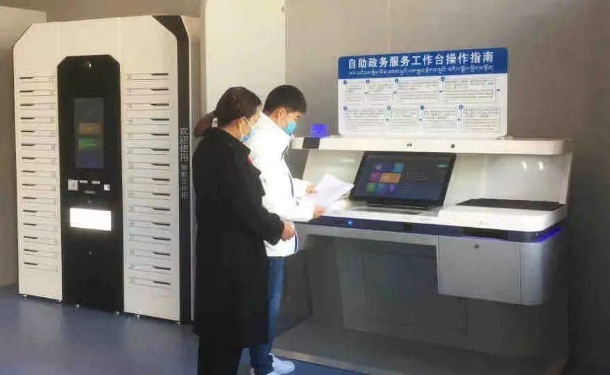 图为在林芝市政务服务中心24小时自助服务大厅,工作人员帮助群众办理业务。(资料图)
