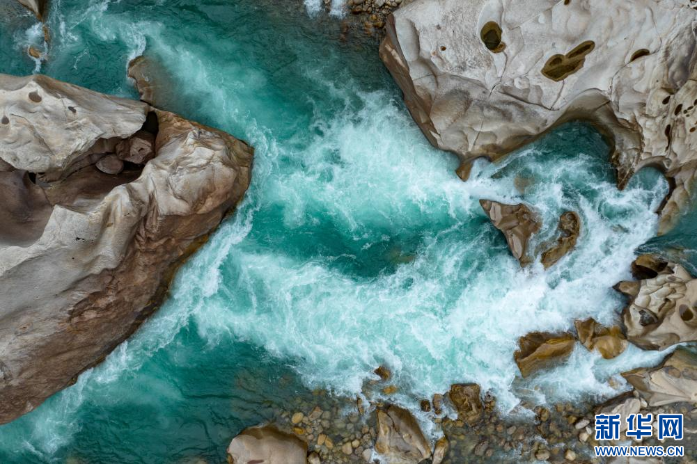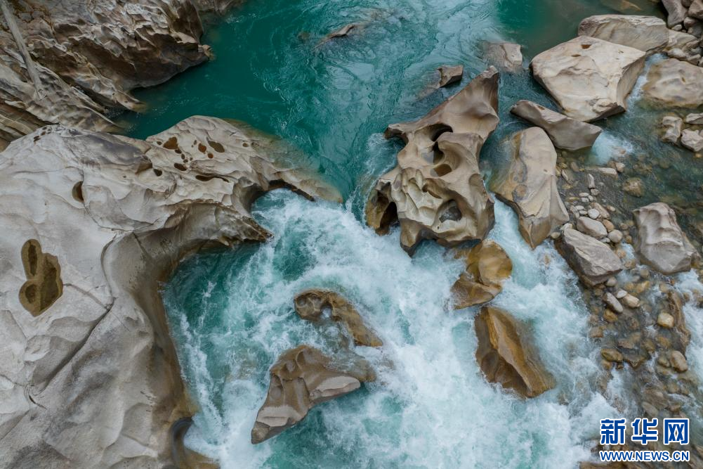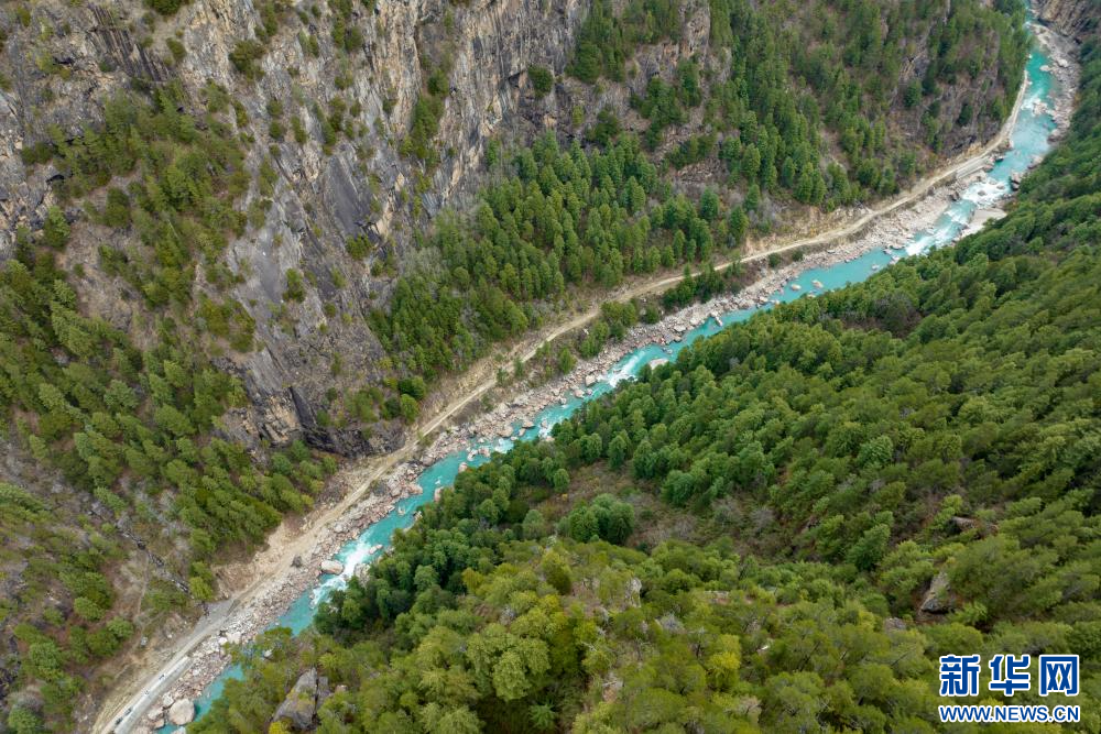 4月5日,在嘉黎县境内拍摄的“水磨岩”峡谷景观(无人机照片)。 新华网 旦增努布 摄