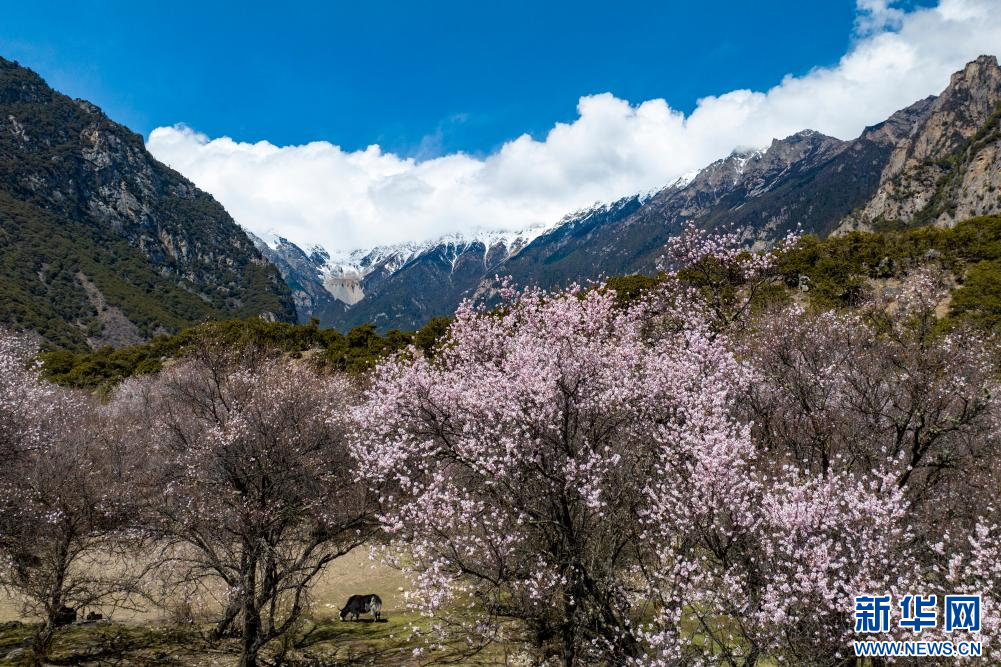 4月5日,在嘉黎县尼屋乡境内盛开的桃花。新华网 旦增努布 摄