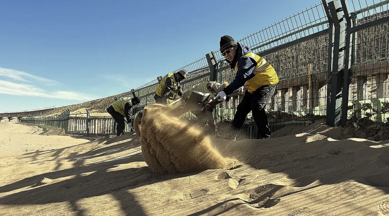 他们先后共清理措那湖风积区积沙约50万立方米,同时增设了多种防沙设施,如高立式PE防沙网、PE大方格防沙网、低立式PE防沙网和挂(插)板式挡沙墙等。这些措施大大减轻了养护管理的压力,确保了区段的安全和稳定。这些成果不仅得到上级业务部门的认可,同时也被同行所推崇。