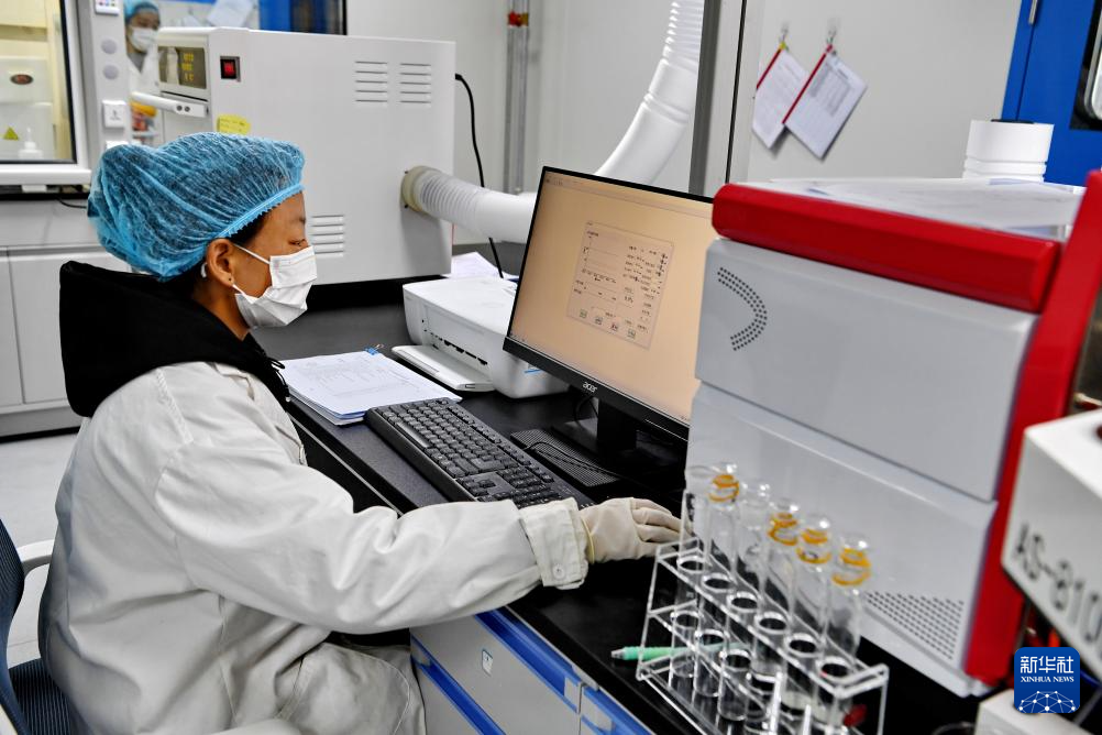 嘎确生态畜牧业发展有限责任公司检验人员在对牛奶中的污染物进行检测(8月24日摄)。新华社记者 张汝锋 摄