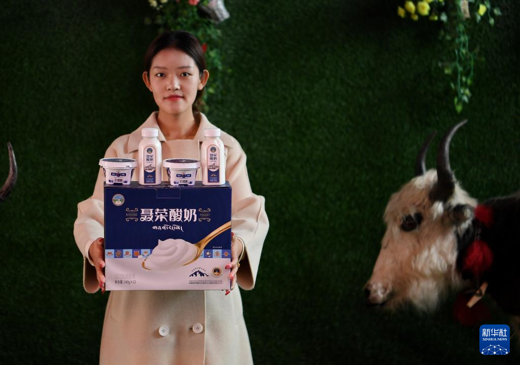 嘎确生态畜牧业发展有限责任公司的工作人员展示部分牛奶产品(8月24日摄)。新华社记者 张汝锋 摄
