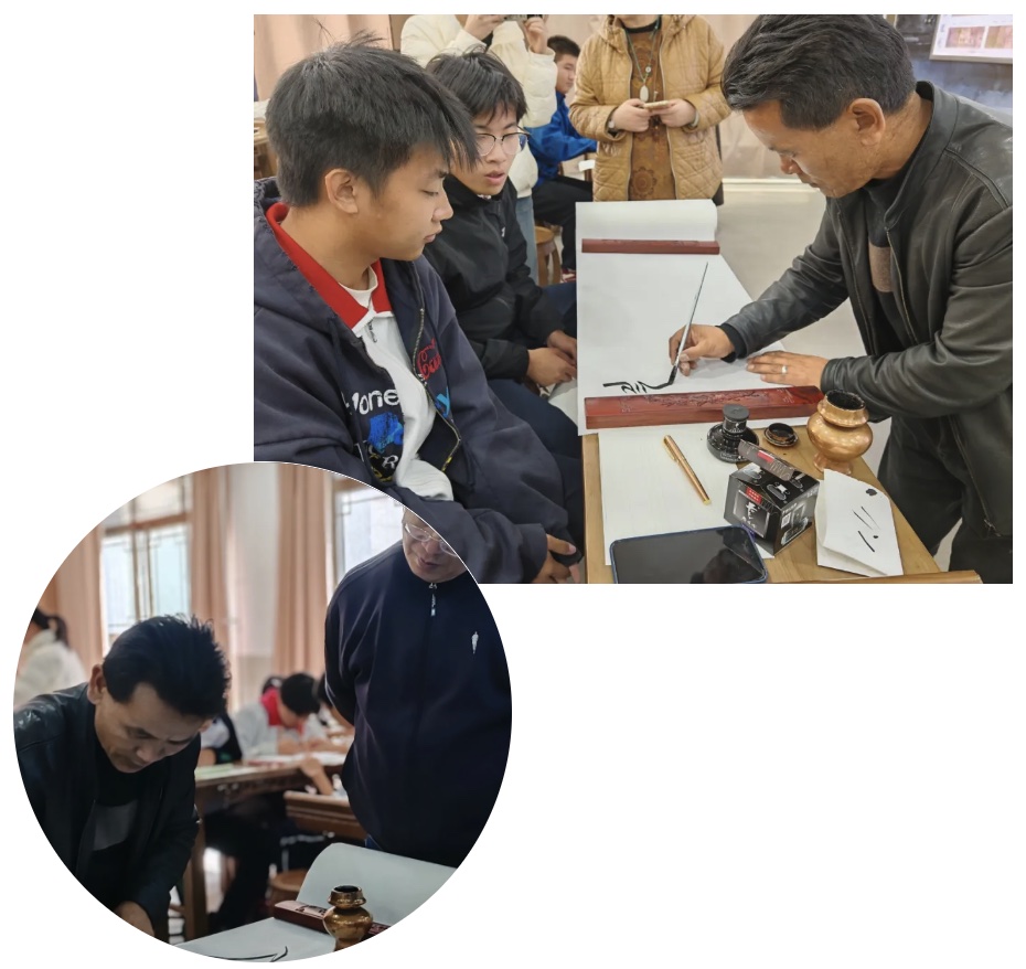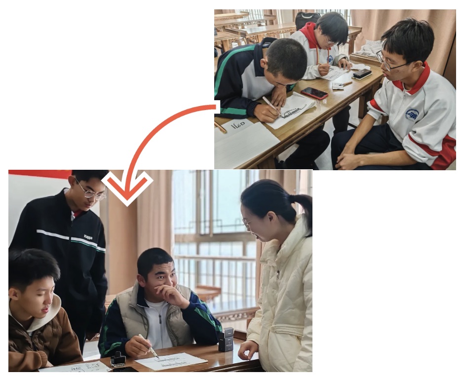 传统藏文书法是我校一直开设的特色课程,此次访学活动中,燕化附中的老师和同学们也走进书法教室,听老师介绍藏文书法的知识,并在北实同学的陪伴下,尝试用硬笔书写祝福语“扎西德勒”。
