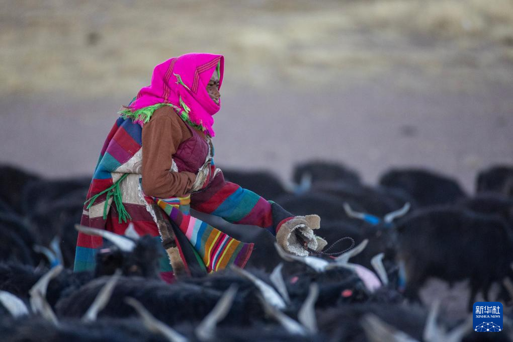 措勤县紫绒山羊原种场的一位牧工在照看优质种羊群(11月20日摄)。新华社记者 姜帆 摄