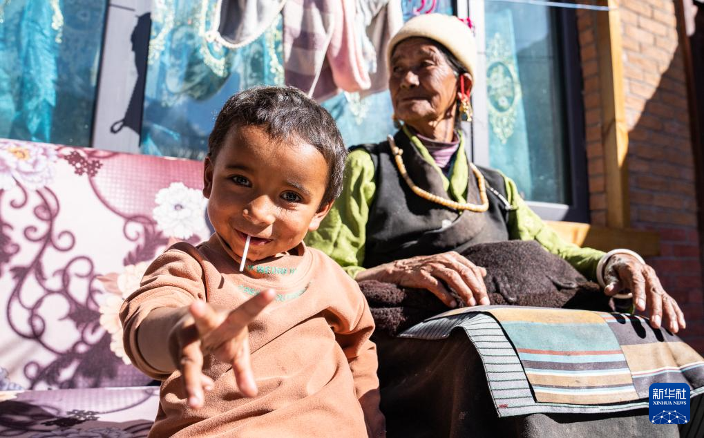 12月15日,达曼新村的孩子和老人在晒太阳。新华社记者 丁增尼达 摄