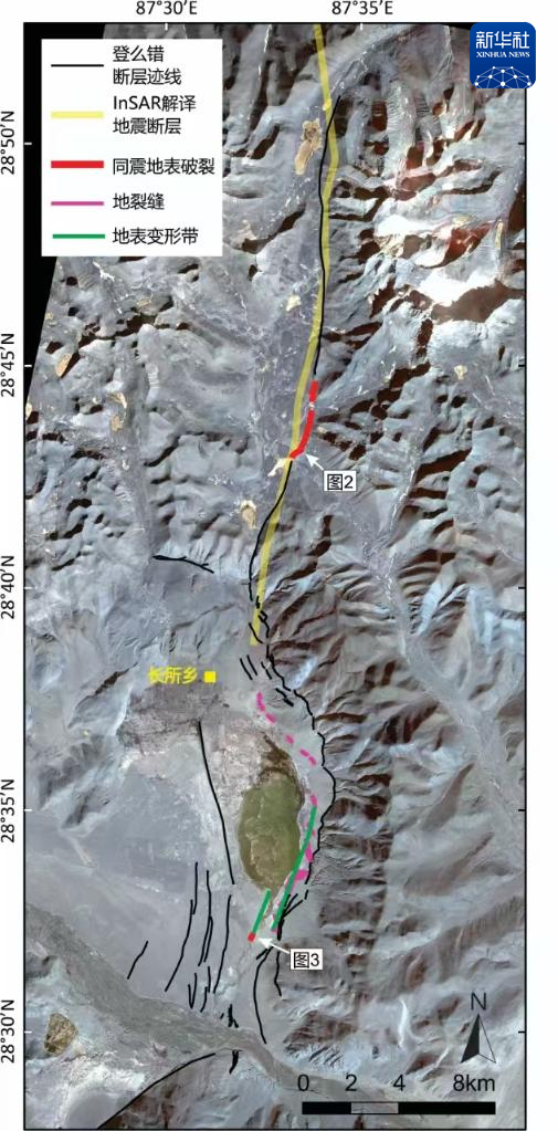 中国地震局地质研究所、四川省地震局联合调查团队1月9日在西藏日喀则定日县长所乡杂村南发现定日地震同震地表变形带,同震形变带延伸超过10千米。