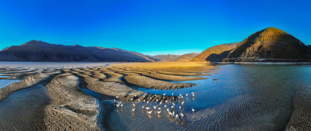 尹中华《尼洋河与黑颈鹤》