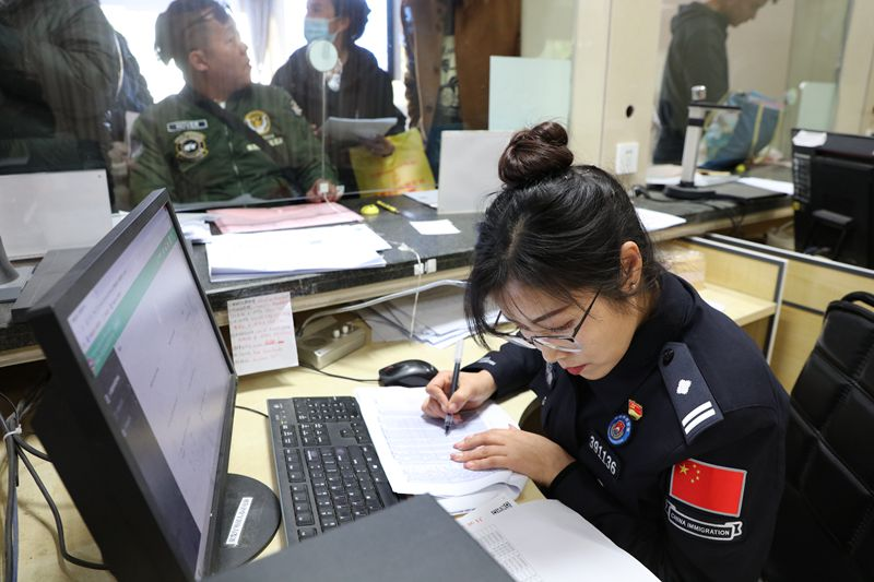 图为西藏边检总站执法调查支队办证室民警在工作。沈鹏飞 摄(受访者供图)