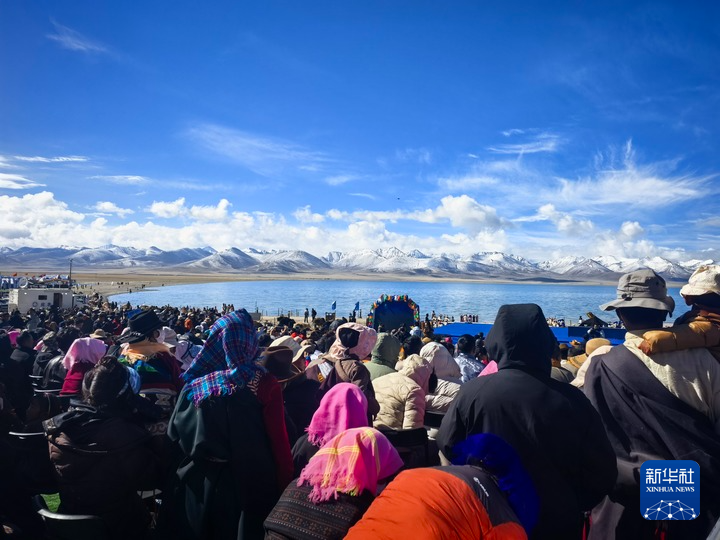 “开湖日”现场格外热闹,不仅有取水等“开湖”仪式,还有精彩表演和非遗体验。“我第一次来纳木错,真幸运能赶上‘开湖’盛景!”来自四川成都的游客白丹特意穿上了藏族传统服装来拍照。
