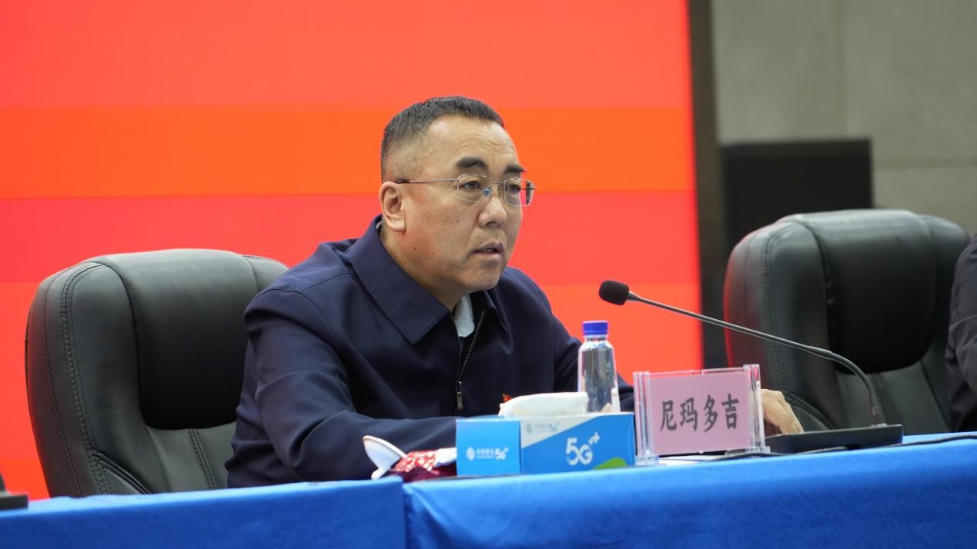 西藏自治区通信管理局党组书记、局长尼玛多吉在讲话中。(受访者供图)