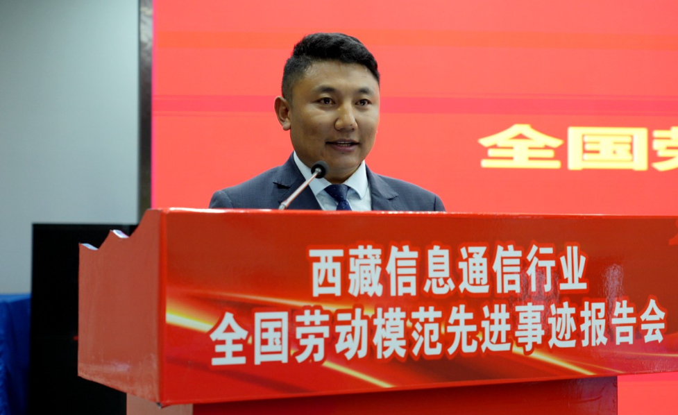28日,西藏信息通信行业全国劳动模范先进事迹报告会在中国移动西藏公司顺利举行。全国劳动模范、中国移动西藏公司阿里普兰县分公司其美多吉作事迹宣讲。