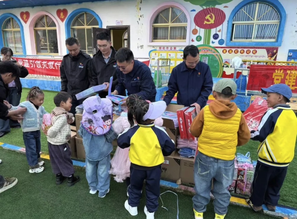 在党群共建环节,项目部启动“微心愿认领”行动,通过入户走访、社区议事会等方式收集群众需求23条。针对困难家庭儿童助学问题,项目党员自愿成立“助学帮扶小组”为当地幼稚园送上了爱心书包及文具;针对社区公共区域调配工程物资,针对村民反映强烈的“空瓶子、煤气罐堆放杂乱”问题,项目部发挥工程管理优势,在社区闲置区域规划建设标准化储存仓库1组,配备消防设施与分类标识。仓库启用当天,居民次仁卓玛笑着说:“现在院子干净了,孩子们玩耍也安全多了。” 截至目前,12 项民生问题已整改销号,剩余需求均列入项目“我为群众办实事”台账,明确 7 月底前全部办结。