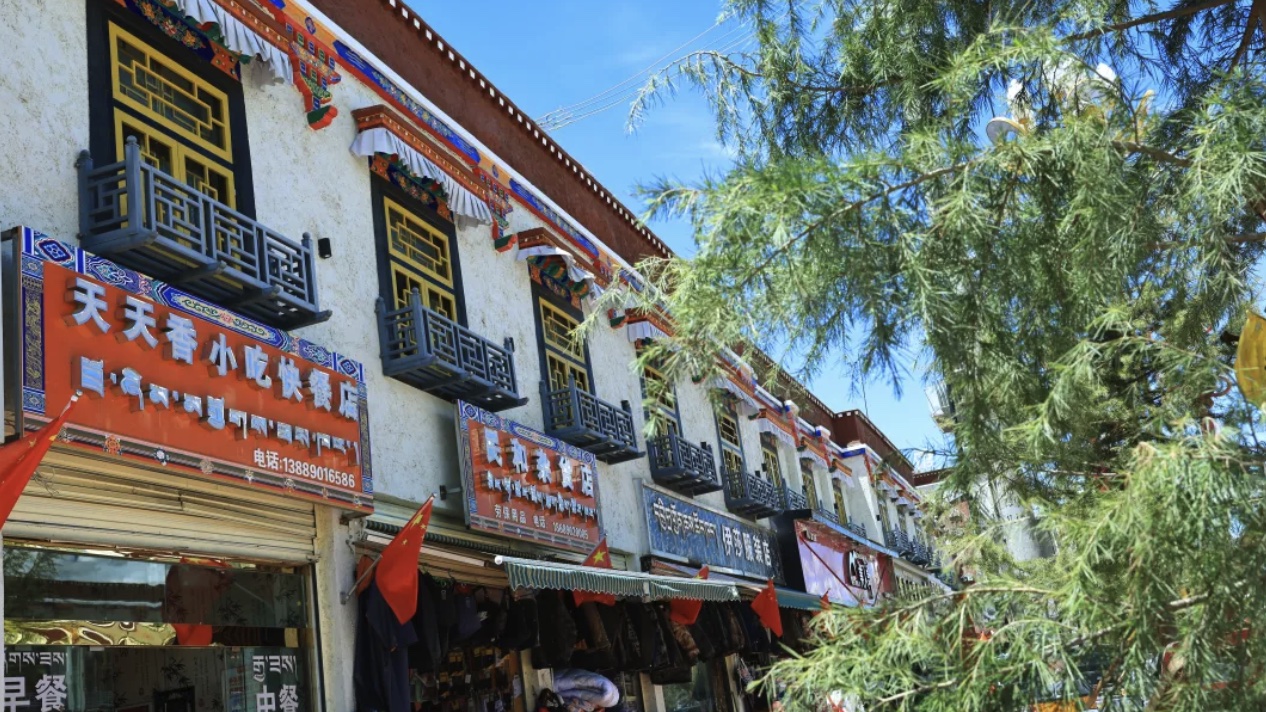 在具体改造中,通过新建商户外立面、更新管线、加装亮化等措施,让街道商户外立面风格实现统一,显著提升了街道的美观度与舒适度。值得关注的是,修复及新建的商户外立面特意采用传统藏式绘画工艺,风格选用贡培扎巴新藏式风格,以此防止有限的藏式文化遗产在城市化浪潮中逐渐消亡。而通过外立面装饰改造形成统一风格后,老旧街区的藏式特色更加凸显,也为进一步促进文旅消费奠定了基础。