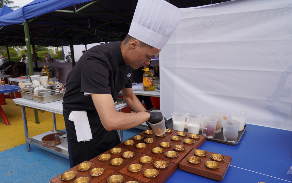 在传统拉萨美食重现环节,来自牧耕代表队的强巴大厨将拉萨当地食材和西藏游牧饮食风格进行融合,制作出了外酥里嫩的风干牛肉;在创新拉萨美食制作环节,来自极地之秘代表队的旦增大厨一直致力于开发新藏餐菜式,本次比赛他以菜品“四味小碟”向评委和观众们展现美食的无限创意。