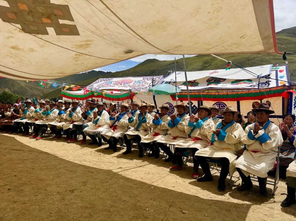 发放现场气氛热烈,村委会主任丹增塔杰开展西藏自治区成立60周年庆祝大会精神宣讲,传递习近平总书记“看着北斗星走不迷路,跟着共产党走会幸福”重要指示的深刻内涵。同时耐心地为群众讲解纪念品的使用方法,确保他们能正确使用。