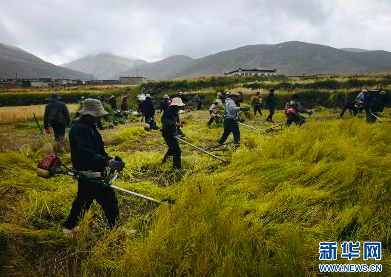 新华网拉萨9月27日电(记者蒋梦辰)金秋时节,西藏日喀则市谢通门县达那普乡查卡村的田地一片金黄。与往年不同,一台台轻便高效的小型收割机发出阵阵轰鸣,随着操作手的脚步,在田间灵活穿梭。