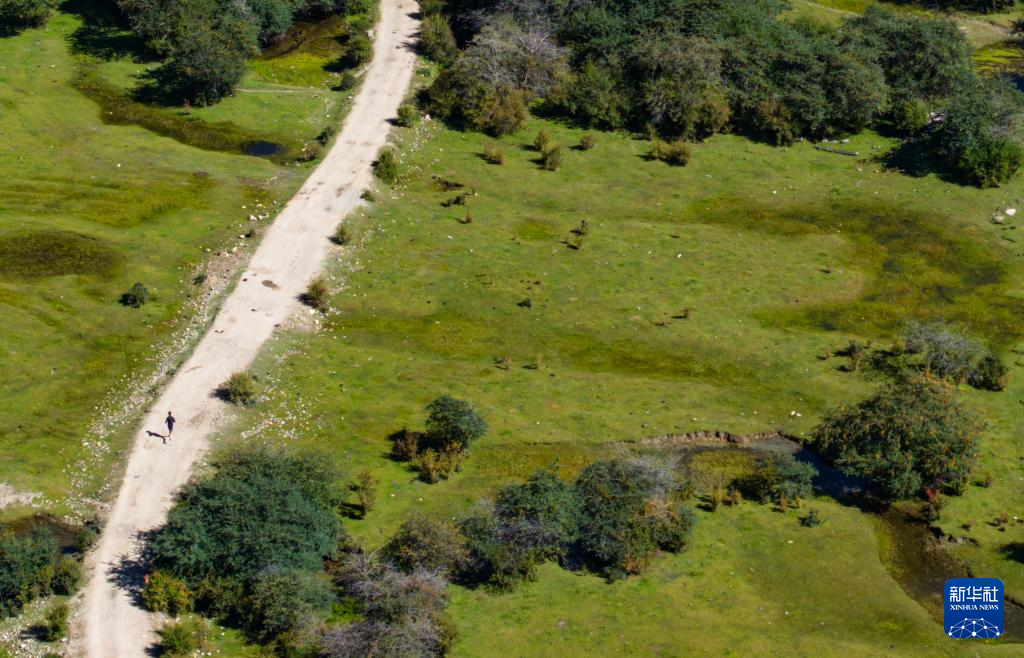 9月27日,参赛选手在赛道上奔跑(无人机照片)。新华社记者 格桑朗杰 摄