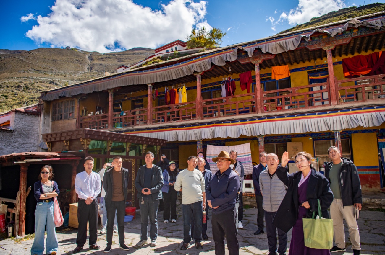10月11日,考察团在西藏山南市洛扎县赛卡古托寺景区考察。新华网 旦增努布 摄