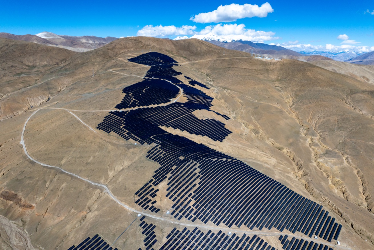 10月9日拍摄的西藏山南市洛扎县乃村保障性并网光伏发电项目(无人机照片)。新华网 旦增努布 摄