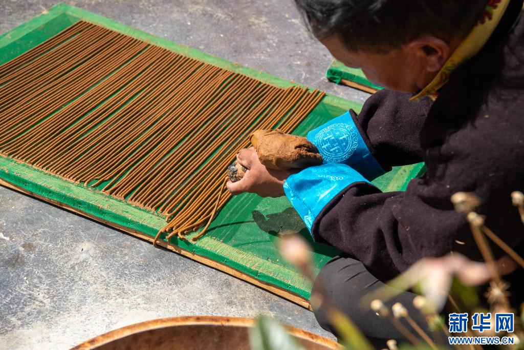 10月17日,西藏拉萨市尼木县吞巴镇吞达村县级非遗传承人普布次仁在制作藏香。新华网 旦增努布 摄