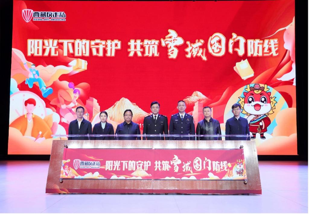 6日,西藏反走私“文化大篷车”活动在拉萨师范学院启动,与会领导为活动揭幕。(拉萨海关供图)