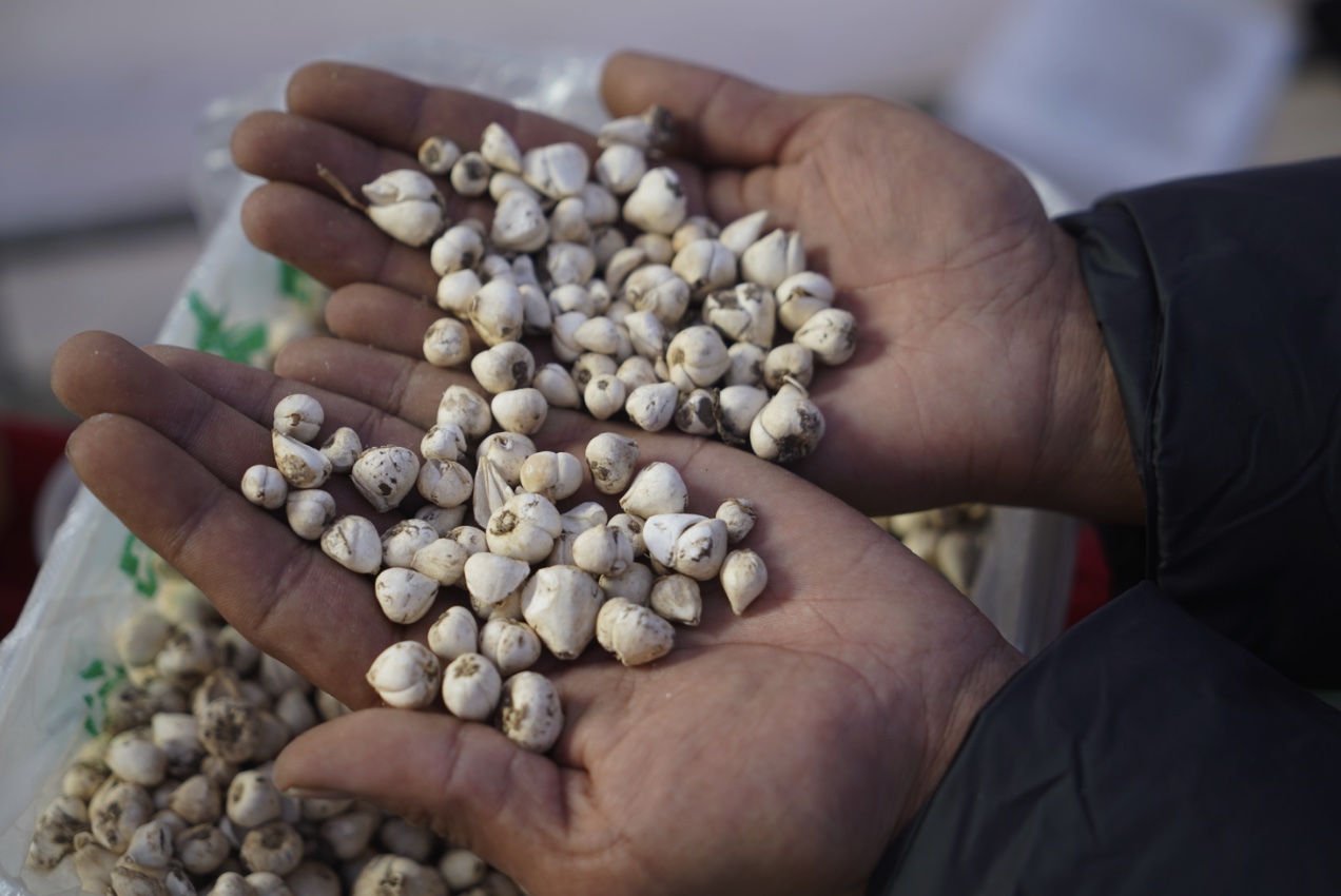 格桑曲扎双手捧着贝母 桑旦多吉 摄