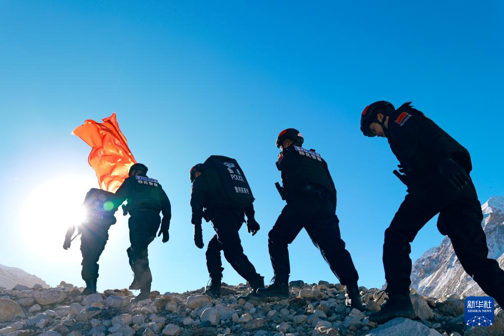 珠峰边境派出所的移民管理警察在珠峰核心区巡逻(12月24日摄)。新华社记者 周昱龙 摄
