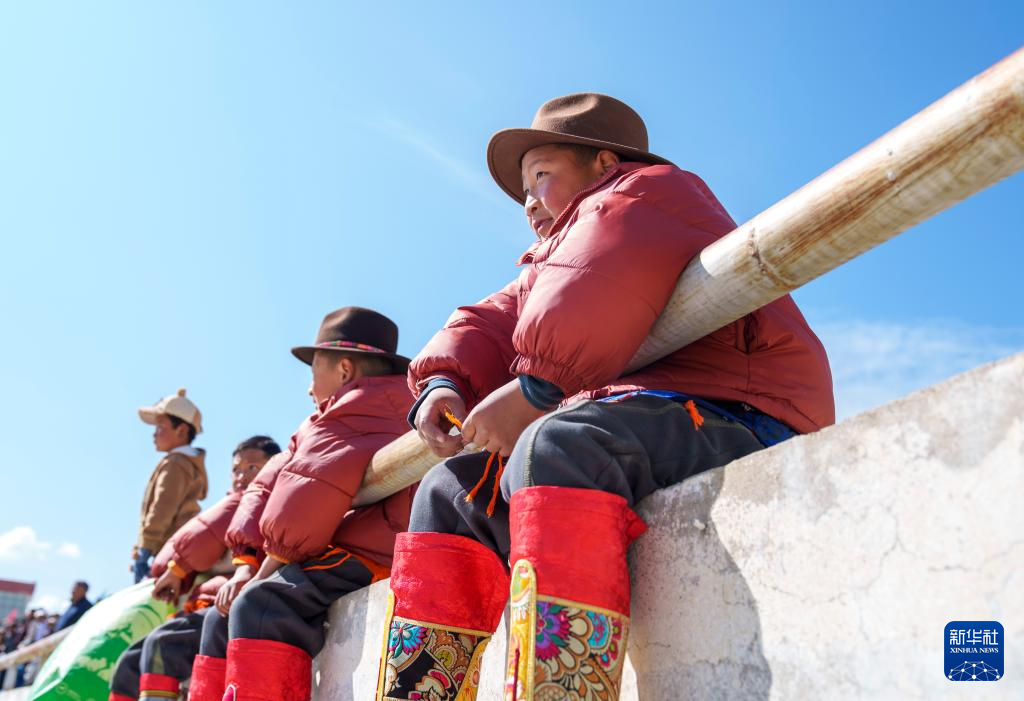 2月20日,观众席上的小朋友在观看马术表演。新华社记者 丁增尼达 摄