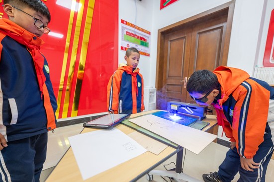 3月26日,学生在制作激光作品。新华网 旦增努布 摄