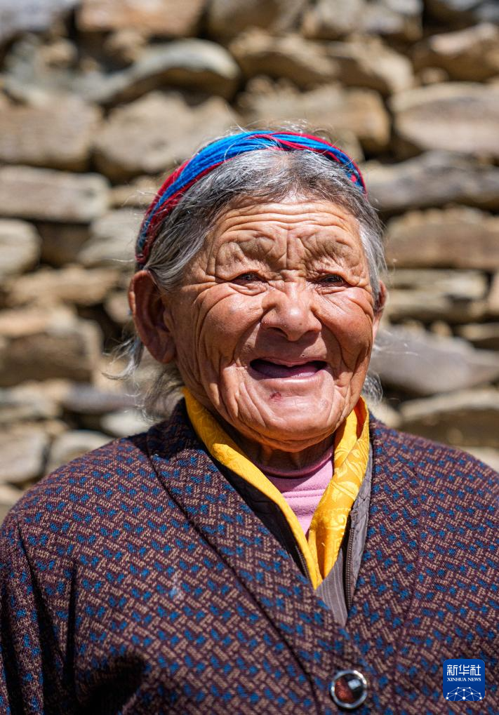 次仁桑姆在宗卡村家中晒太阳(3月26日摄)。