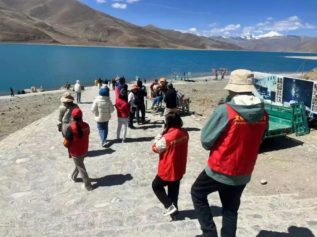 “我们一来到羊湖,志愿者们就主动迎上来,非常热情地为我们推荐景点。跟着志愿者的引导,我欣赏了很多美景,服务真的很贴心。”来自四川成都的游客感叹道。